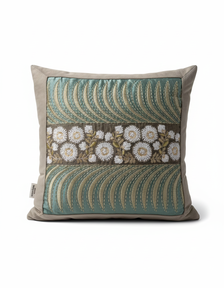 The Mint Floral Stripe Cushion brings gentle rhythm and refined charm to your space through a balanced composition of mint, gold, and ivory tones. Crafted from limited, repurposed luxury textiles, each cushion reflects thoughtful design and mindful elegance, making it a timeless accent for curated interiors.