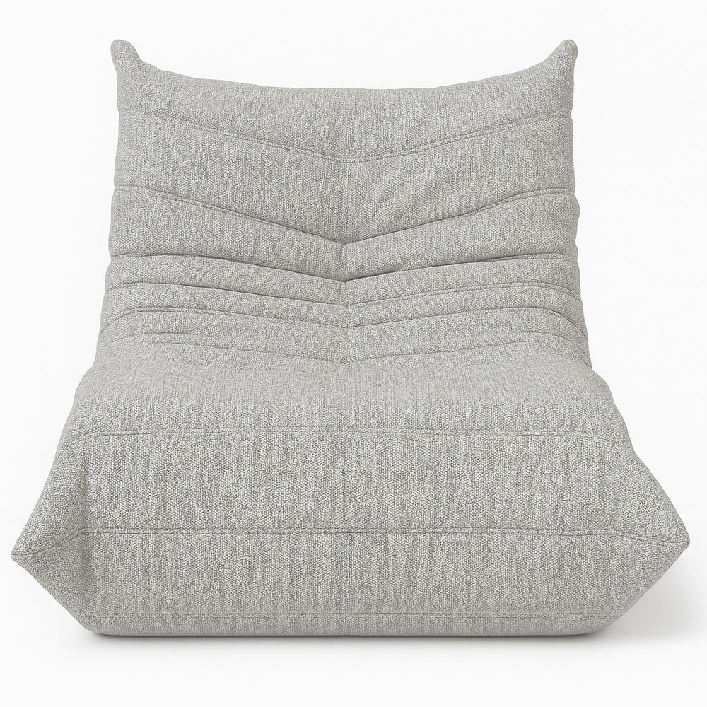 - Sculptural lounge silhouette inspired by relaxed 70s seating