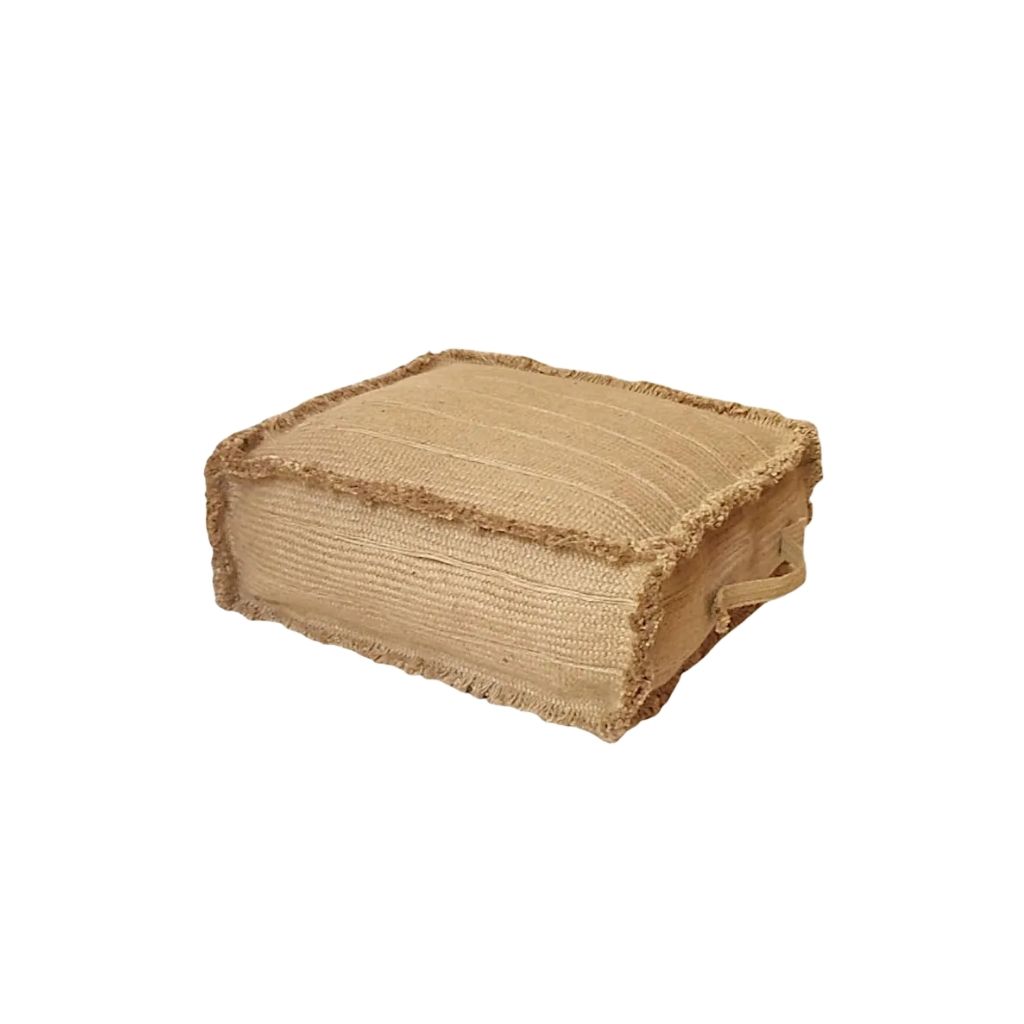 A pouf chair handwoven with craftsmanship from 100% natural jute fibers. It is lightweight, easy to move, and serves as a distinctive decorative piece for any room. Equipped with a side handle for convenient carrying and repositioning. Spot cleaning is recommended.
