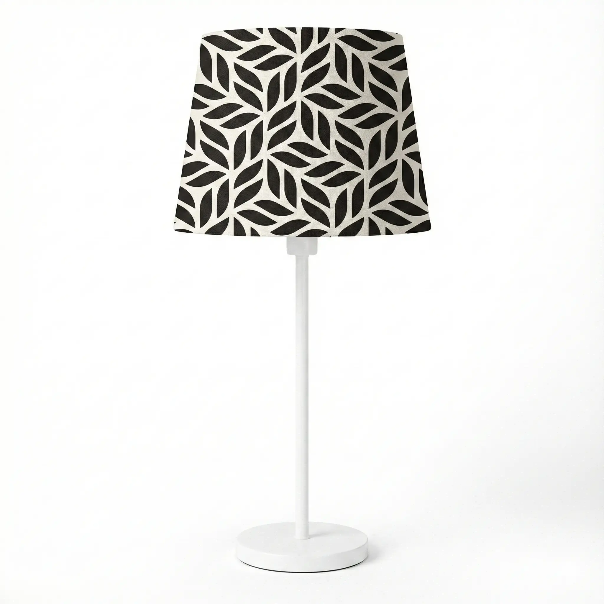 - Fabric lampshade featuring a bold yet friendly leaf pattern