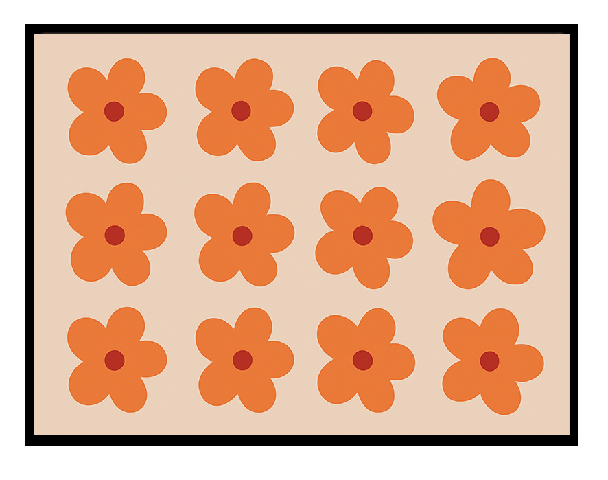 A delicate digital print featuring orange flowers with burgundy centers, set against a soft blush beige background. The warm, muted palette creates a sense of calm and elegance, while the rich floral accents add depth. A refined and graceful piece perfect for serene, nature-inspired interiors.