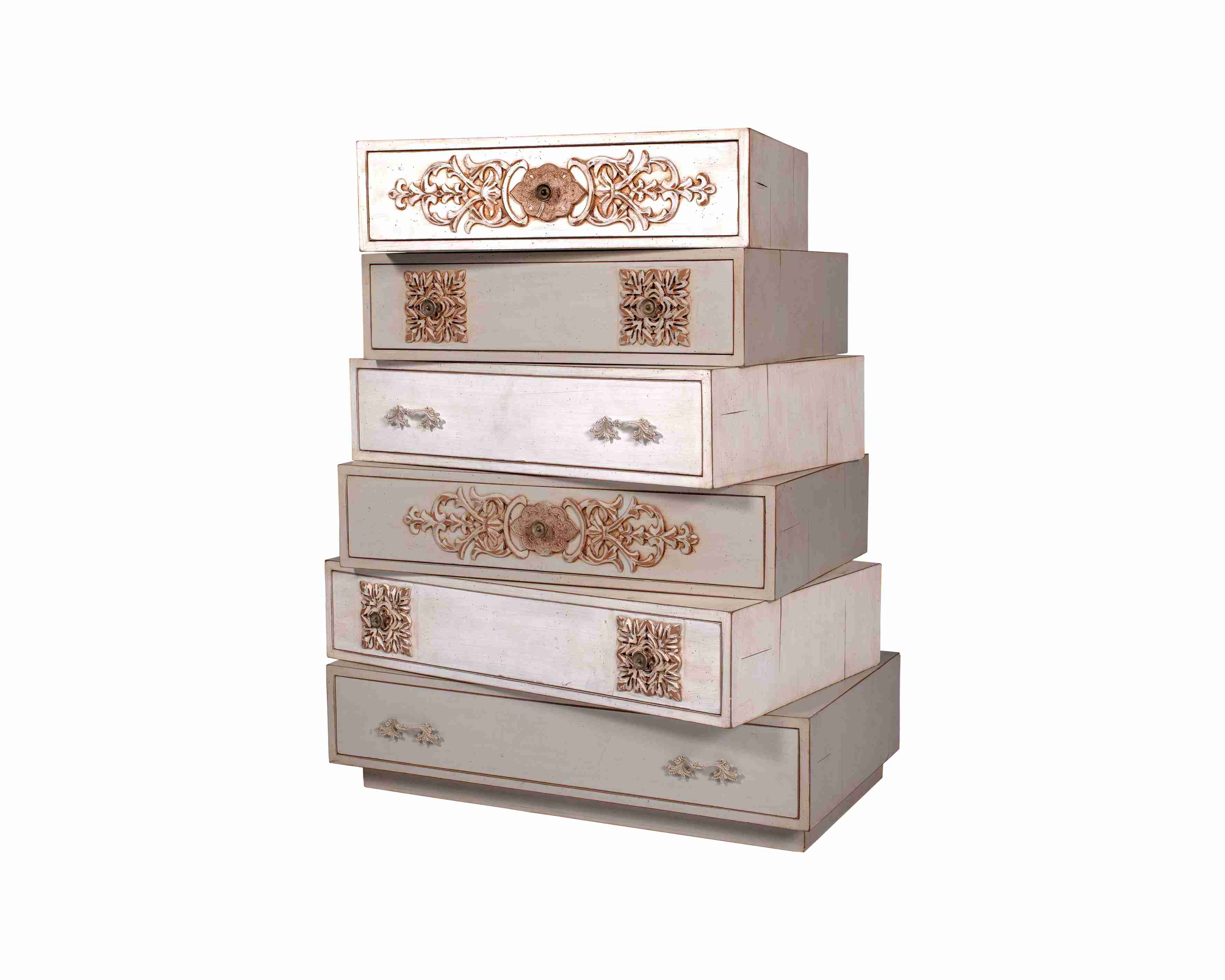 The Oyma 6-drawers chest combines artisanal craftsmanship with timeless design. Featuring intricate handmade carvings, a refined vintage finish, and solid pinewood legs, it offers both beauty and functionality for elegant interiors.