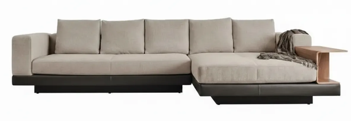A stylish upholstered sofa with wooden accents, combining comfort and natural elegance. Featuring plush cushions, soft fabric upholstery, and a sturdy wooden frame, it offers both durability and sophistication. The wooden detailing adds warmth, making it a perfect fit for modern and classic interiors alike.