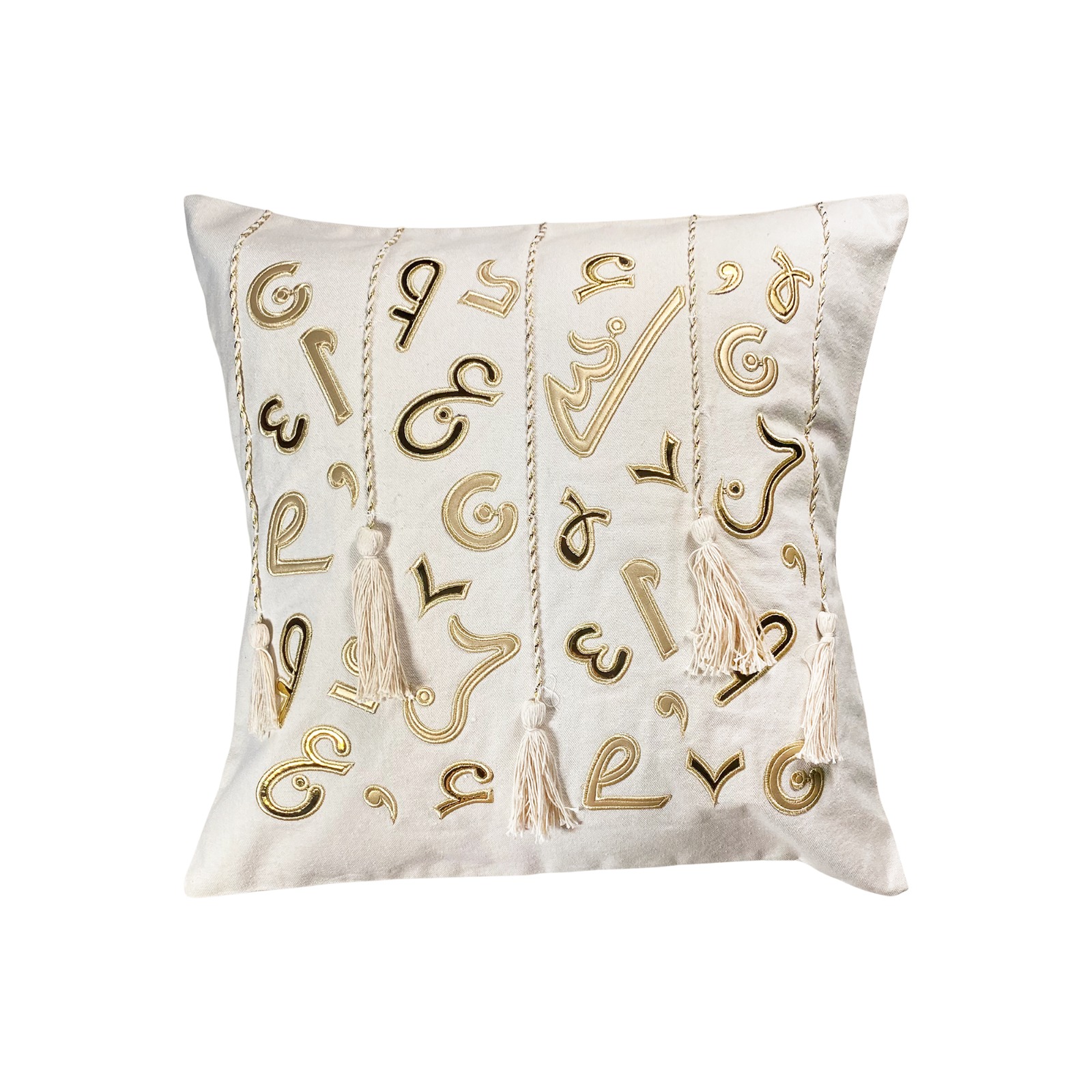 Add an artistic cultural statement to your space with the Arabic Letter Motifs cushion cover. Decorated with elegant golden Arabic letters arranged in a modern composition, this cushion cover blends tradition with contemporary design for a refined decorative touch.