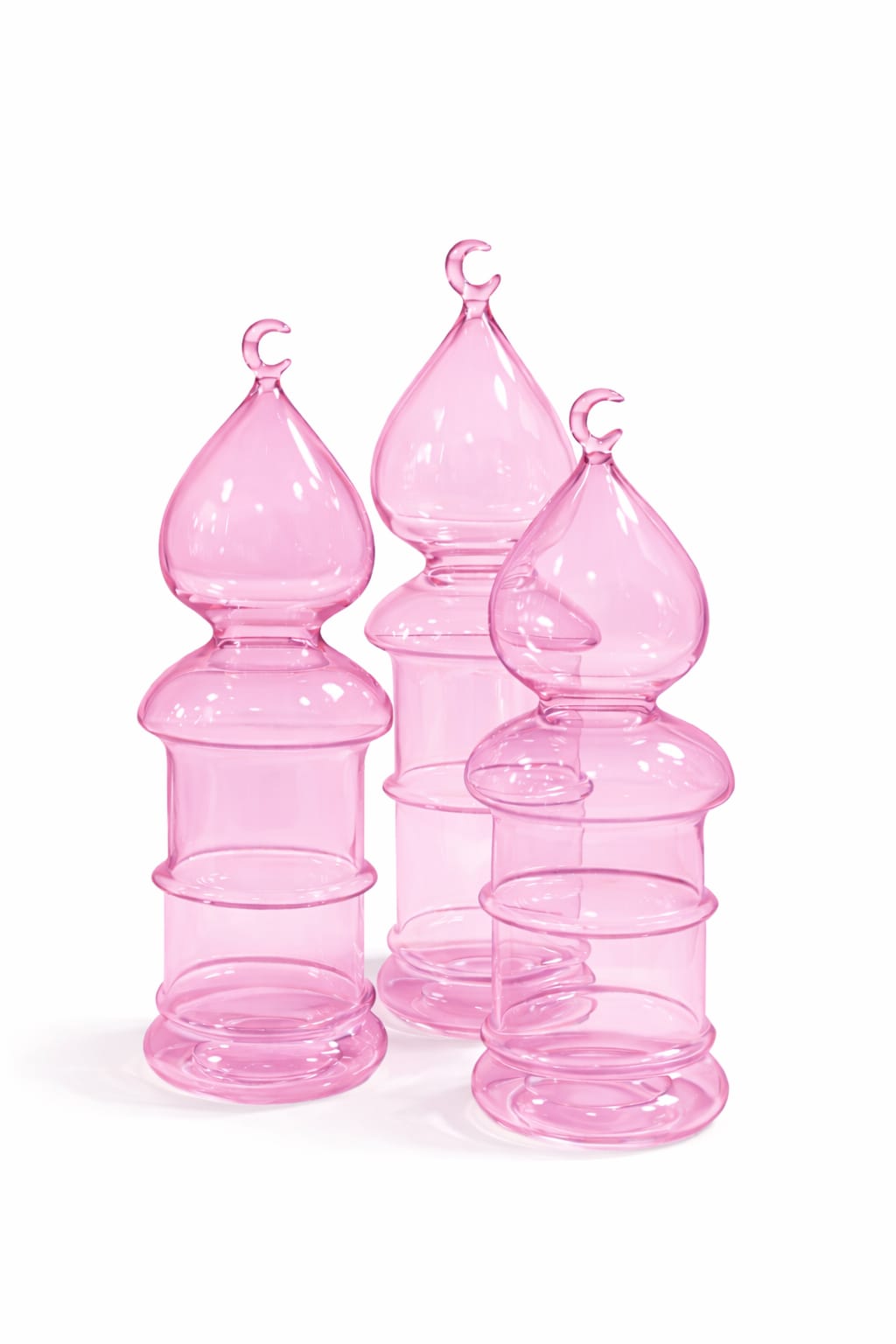 Add a soft festive glow to your Ramadan décor with this elegant glass lantern set. Designed with a graceful crescent top and smooth curves, each piece brings charm and warmth to your home.