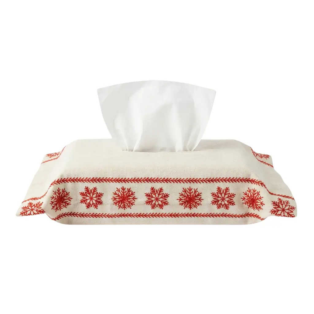 أضيفي لمسة شتوية أنيقة إلى منزلك مع غطاء علبة المناديل بزخرفة الثلج الأحمر. تصميم عملي يضفي جمالًا موسميًا على القطع اليومية.