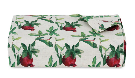 The Romana tablecloth, made from pure linen, showcases a soft beige base beautifully decorated with vibrant pomegranate motifs, adding warmth and a timeless appeal to your dining experience. Perfect for everyday use, it becomes softer with each wash while keeping its elegant appearance.