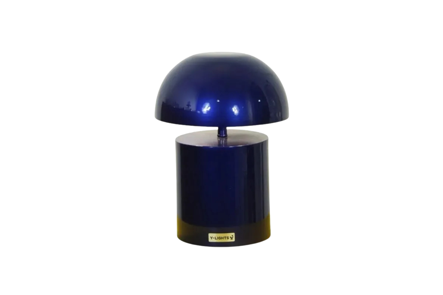 - Sculptural dome shade with a cylindrical base
