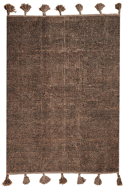 A handmade jute kilim rug in a rich brown hue, featuring a finely woven texture. Its dense surface of small, tightly knit loops enhances both durability and visual depth. Perfect for rustic interiors, casual lounges, or spaces seeking natural charm and resilience.