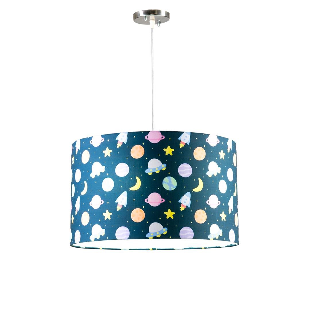 The Sleepy Kids Ceiling Light is designed to bring calm and imagination into children’s rooms. With its playful space-themed illustrations and soft fabric shade, it creates a soothing glow that’s perfect for bedtime routines and everyday play.