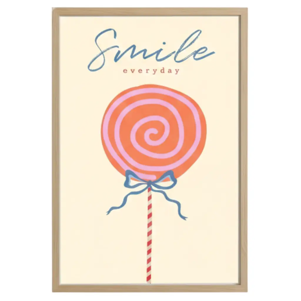Brighten up any space with the cheerful charm of the Smile Everyday wall art. Featuring a bold lollipop illustration and an uplifting message, this artwork adds a happy pop of colour and positivity wherever it’s placed.