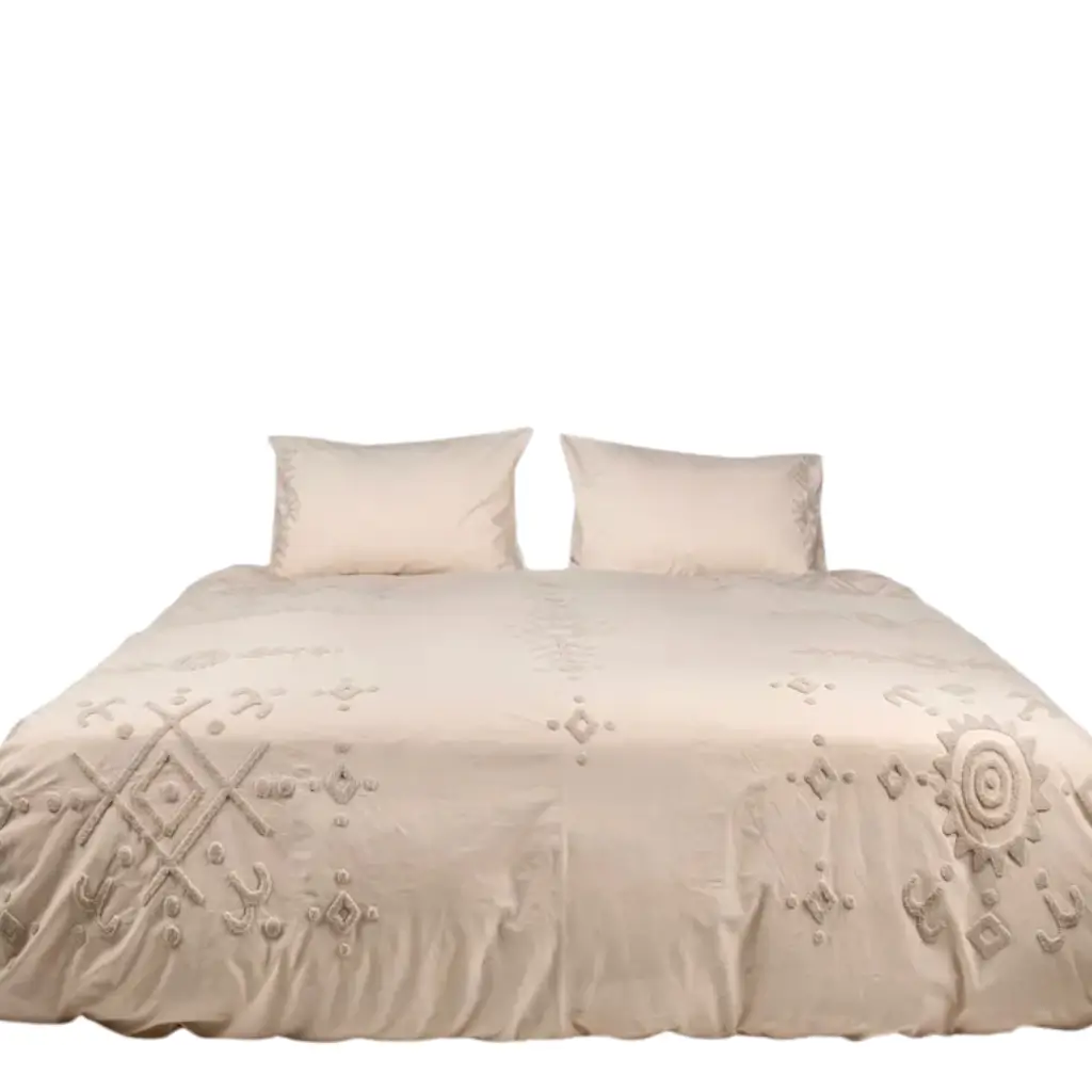 Crafted from 100% Egyptian cotton percale, the fabric is crisp, cool, and breathable. Thoughtful texture meets natural ease, bringing quiet storytelling to your everyday rest.