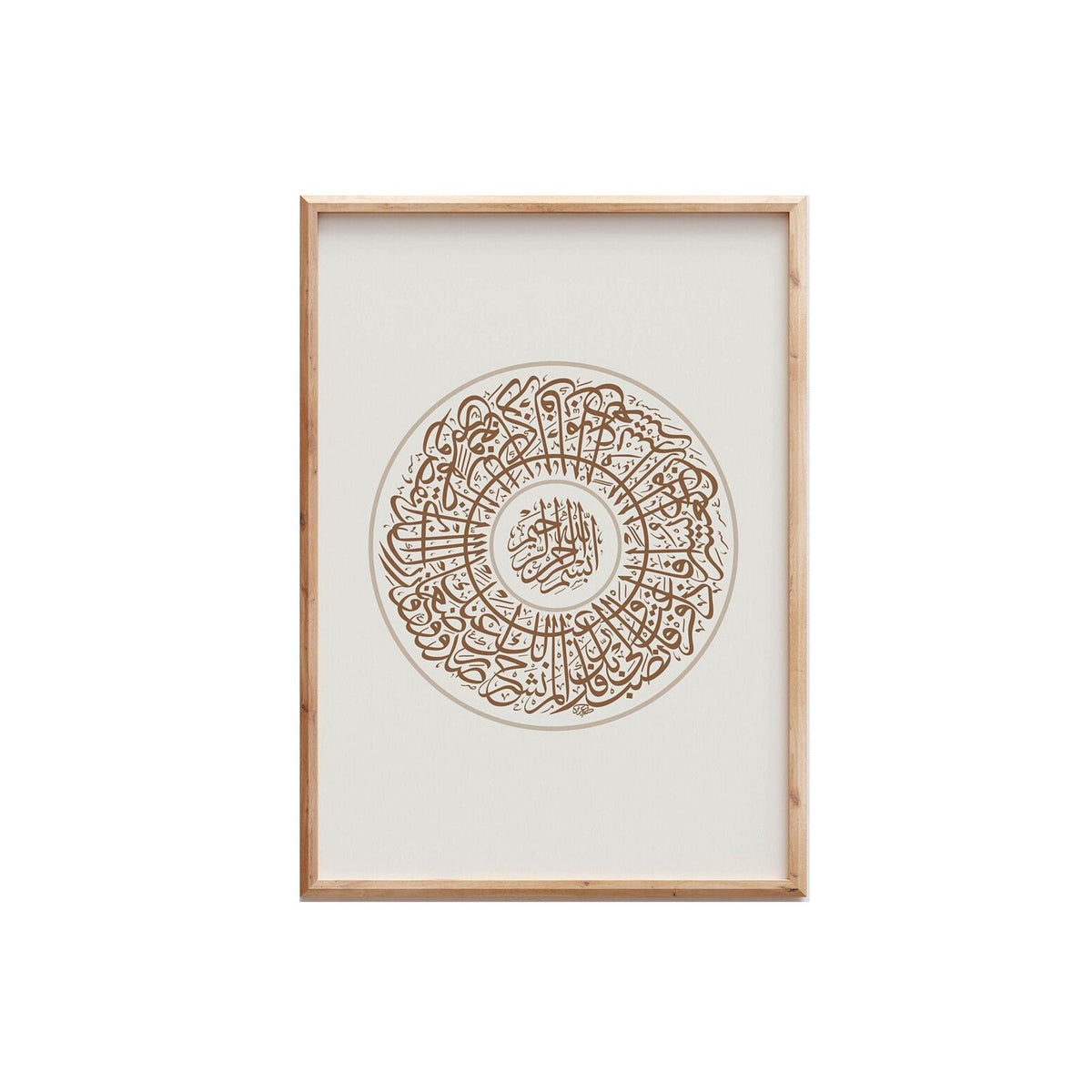 A timeless piece of Islamic art featuring Surah Ash-Sharh, reproduced from a historical Quranic manuscript. Framed with care, this artwork brings spiritual depth and quiet elegance to any interior.