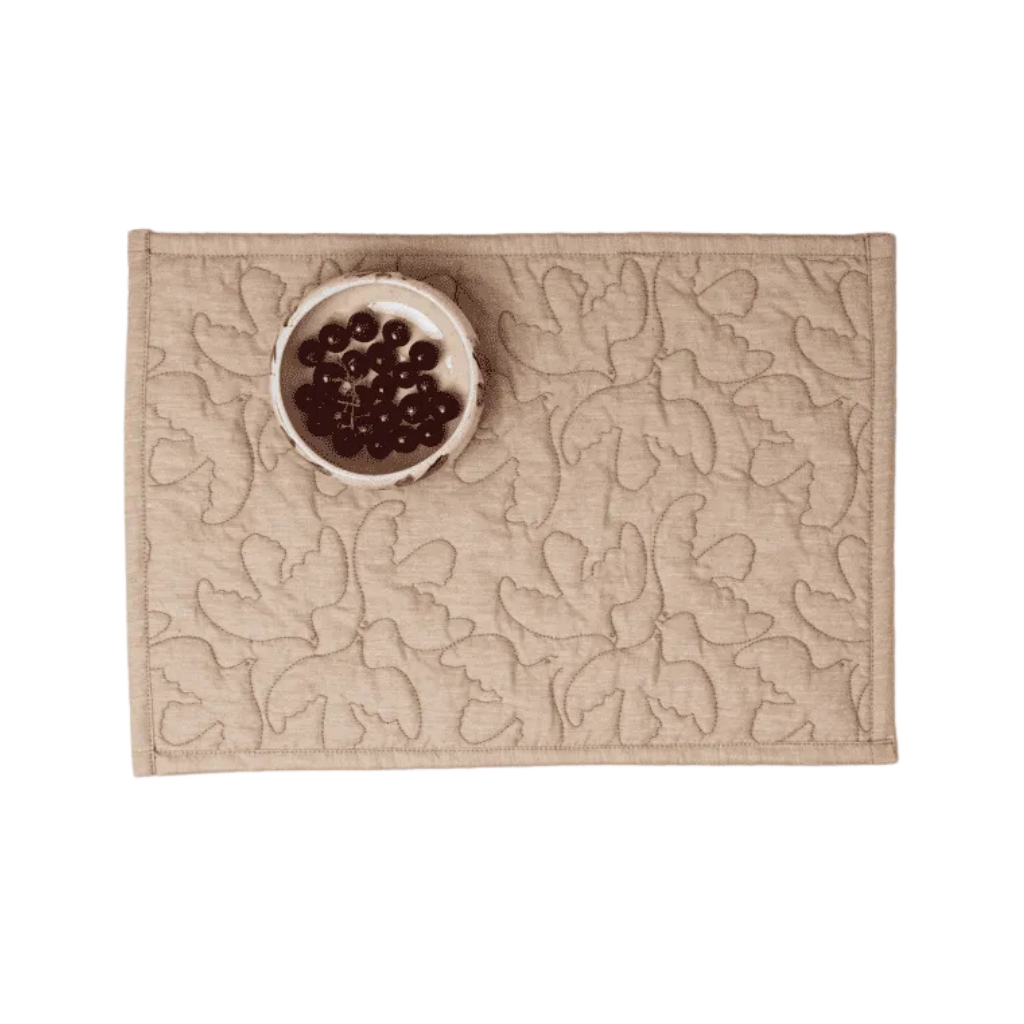 Graceful and serene, the Wing Whisper Placemat features quilted doves in mid-flight — a symbol of peace, softness, and quiet motion. Made from natural organic cotton, it brings gentle texture and calm beauty to everyday dining.