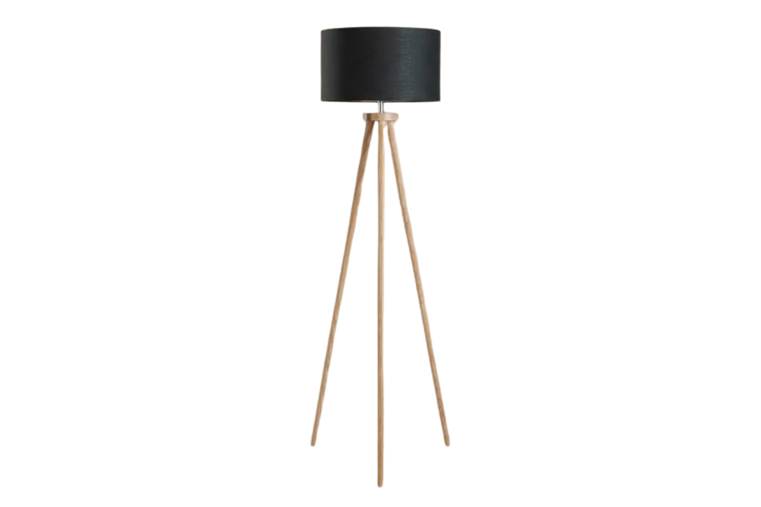 - Natural wood legs paired with a bold black shade