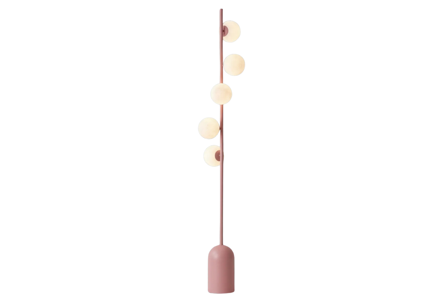 Add a soft feminine touch to your space with the Manara Pink Powder Floor Lamp. Designed with clean lines and glowing globe lights, this modern piece blends subtle color with elegant ambient lighting for contemporary interiors.