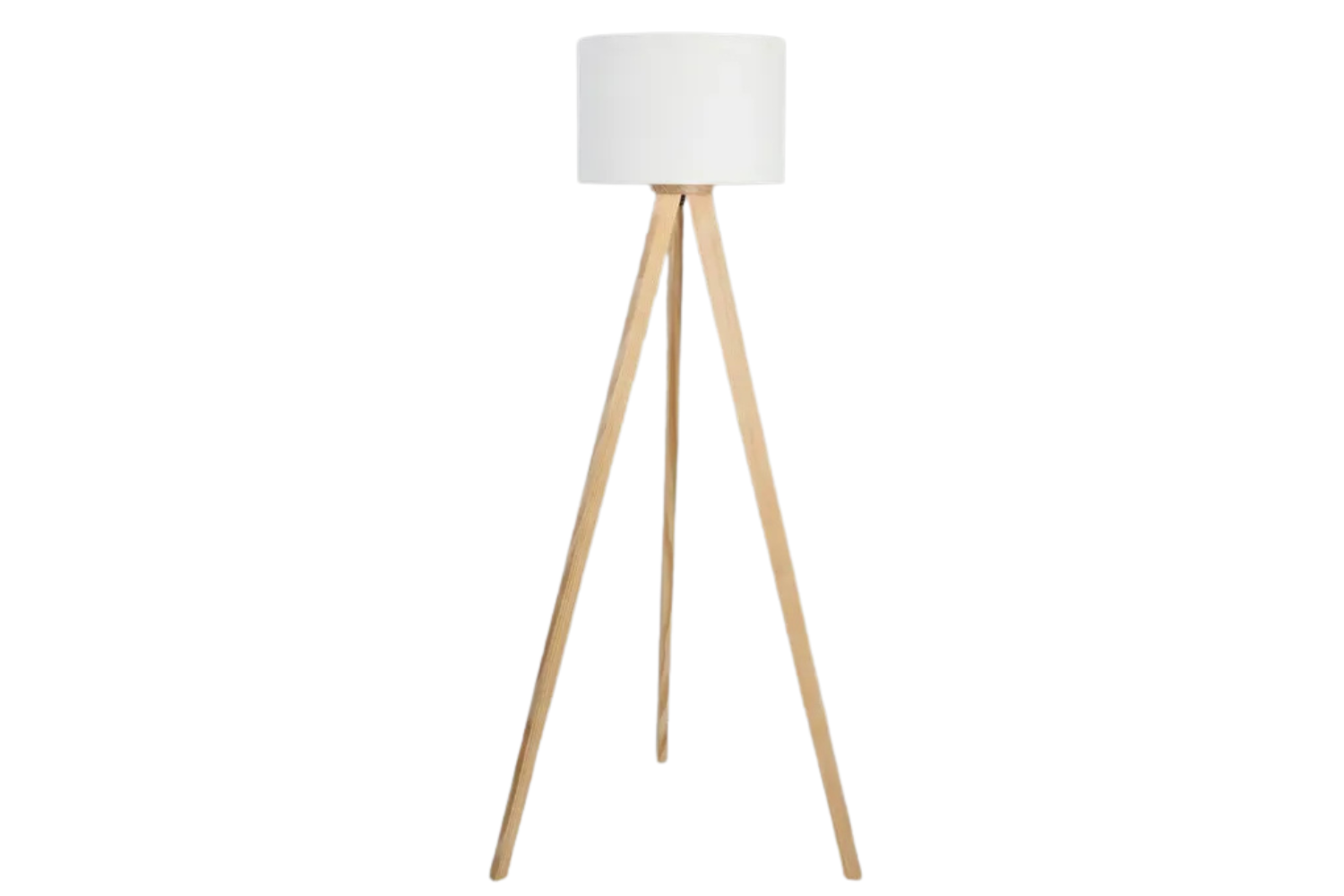 - Natural wooden tripod base inspired by Scandinavian interiors